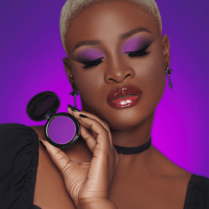 É um pó aveludado roxo de subtom fluorescente vibrante, que pode ser utilizado como sombra e blush.