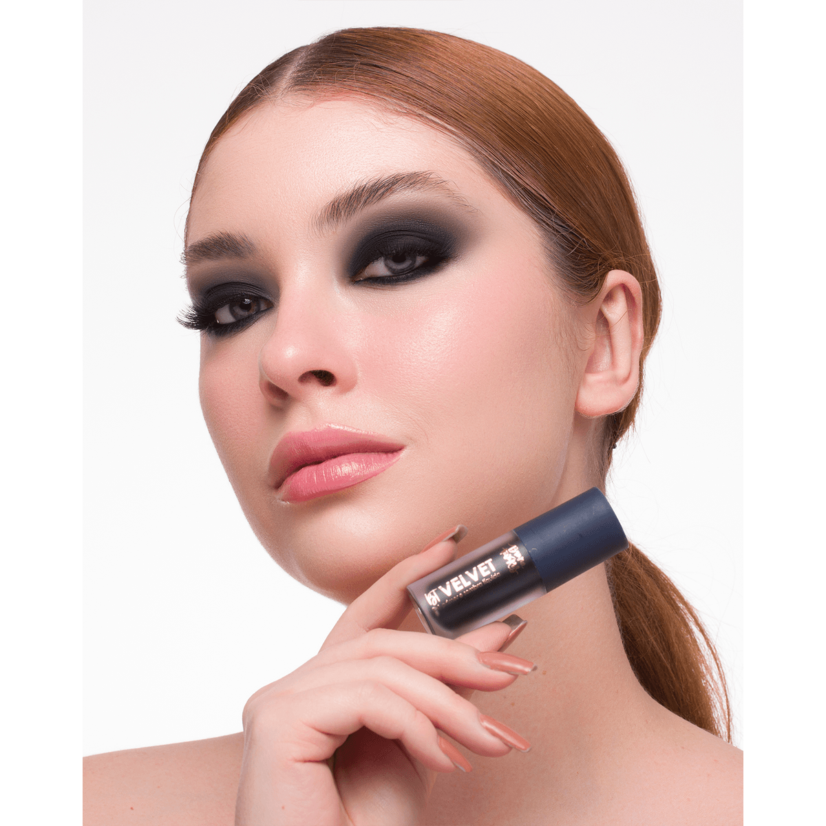 Sombra líquida/primer mega pigmentado e multiuso de acabamento matte aveludado. O BT Velvet pode ser usado como primer e sombra para os olhos, contorno, blush, delineador, corretor de sobrancelha e corretor de fios brancos. O BT Velvet 2X1 oferece alta pigmentação aliada a uma textura confortável e fácil de se esfumar. Ele é resistente à água e ao suor, além de ser longa duração.