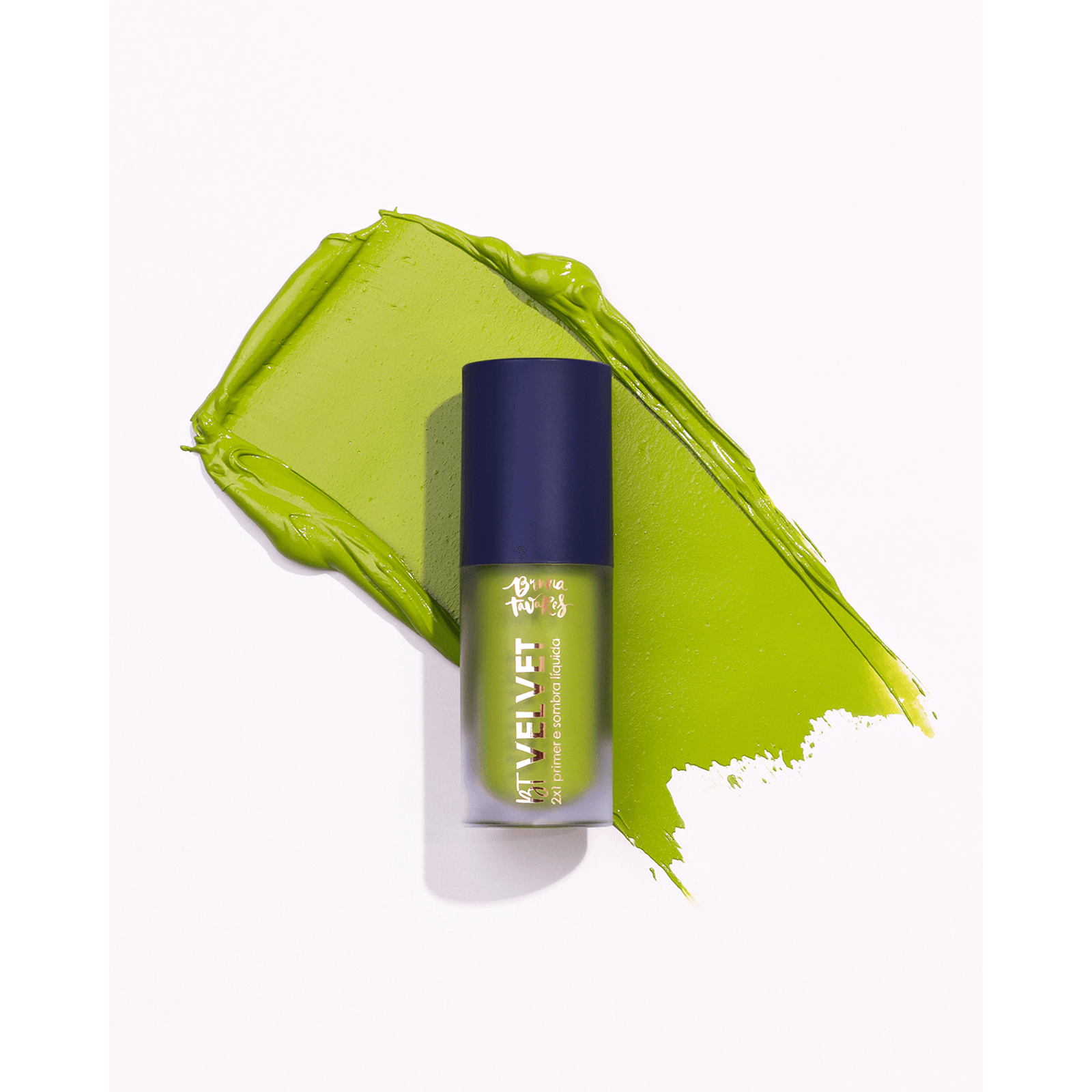 Sombra líquida/primer mega pigmentado e multiuso de acabamento matte aveludado. O BT Velvet pode ser usado como primer e sombra para os olhos, contorno, blush, delineador, corretor de sobrancelha e corretor de fios brancos. O BT Velvet 2X1 oferece alta pigmentação aliada a uma textura confortável e fácil de se esfumar. Ele é resistente à água e ao suor, além de ser longa duração.